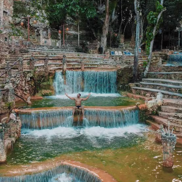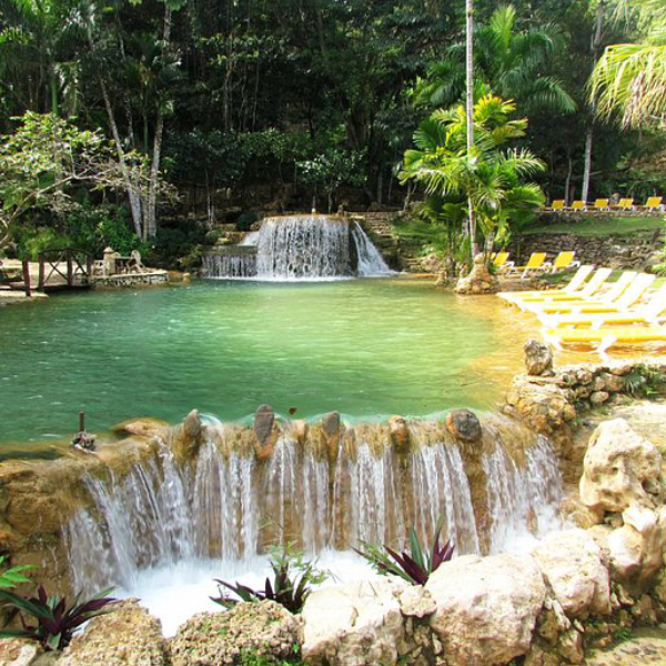 Paraíso Caño Hondo es un icónico destino ecoturístico en la República Dominicana, famoso por sus piscinas naturales de agua fría y su arquitectura rústica integrada en la roca.