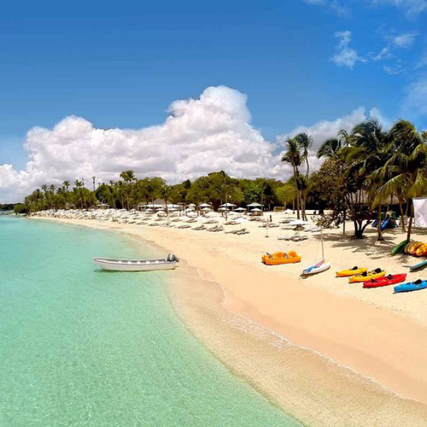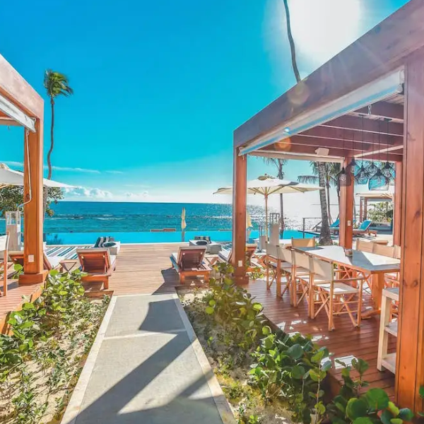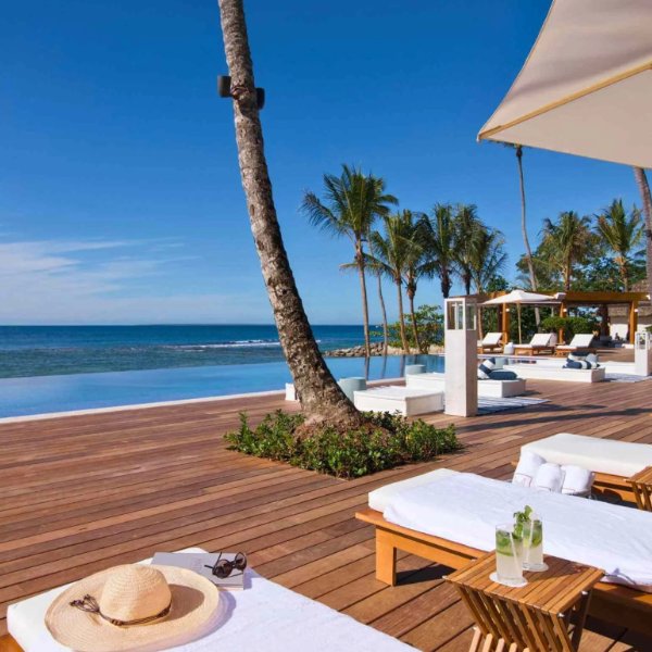 El club de playa Minitas, inmerso en un paisaje tropical frente al mar en Casa de Campo, ofrece vistas panorámicas del mar Caribe y sin duda, una de las mejores puestas de sol de la isla.